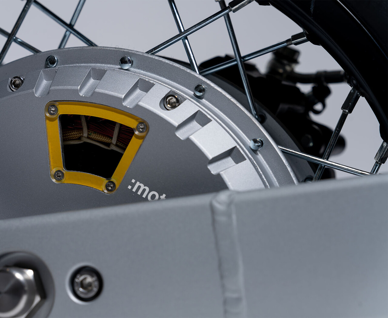 O ciclomotor possui um motor elétrico de cubo de última geração 3 600 watts com velocidade máxima superior a 45 km/h. O motor fornece um binário de 60 Nm.