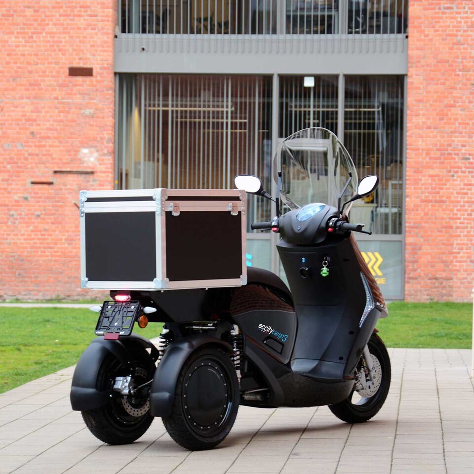 O eccity cargo 3 é um scooter de motocicleta com uma velocidade máxima de 110 km/h. O scooter foi projetado para transporte de carga eficiente em áreas urbanas.