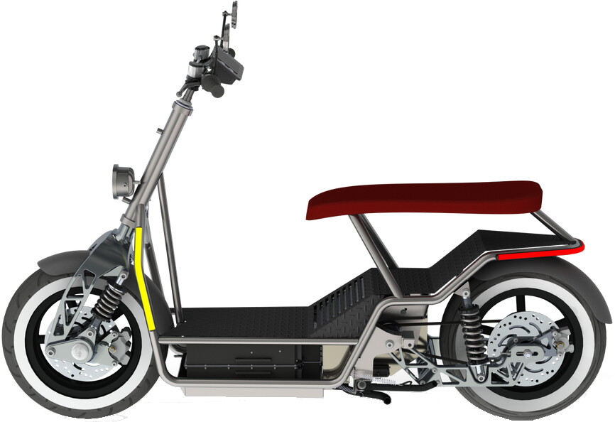 O scooter tem um motor elétrico de 6 000 watts para uma velocidade máxima de 90 km/h. A velocidade pode ser limitada a 45 km/h para utilização como ciclomotor.