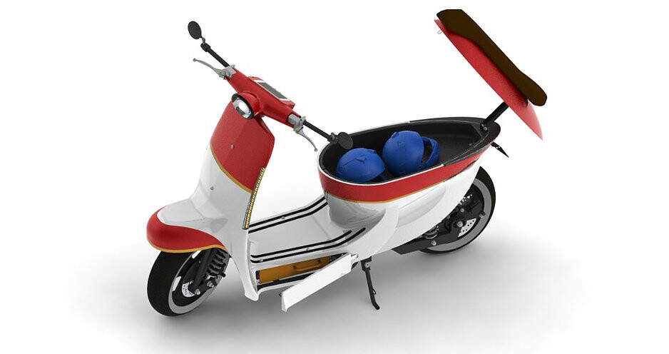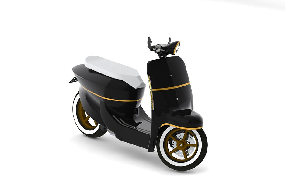 O trotinete está disponível em qualquer cor e pode ser personalizado para fins comerciais, partilha de trotinetes ou propósitos promocionais. Os diversos módulos de negócio disponíveis incluem um bar de café.