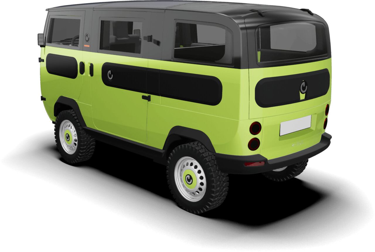 O microbús possui quatro motores elétricos nas rodas (4x4) que fornecem uma potência de 15 000 watts (56 000 watts potência de pico), com uma velocidade máxima limitada a 100 km/h. Os motores proporcionam um binário excecional de 1 200 Nm.