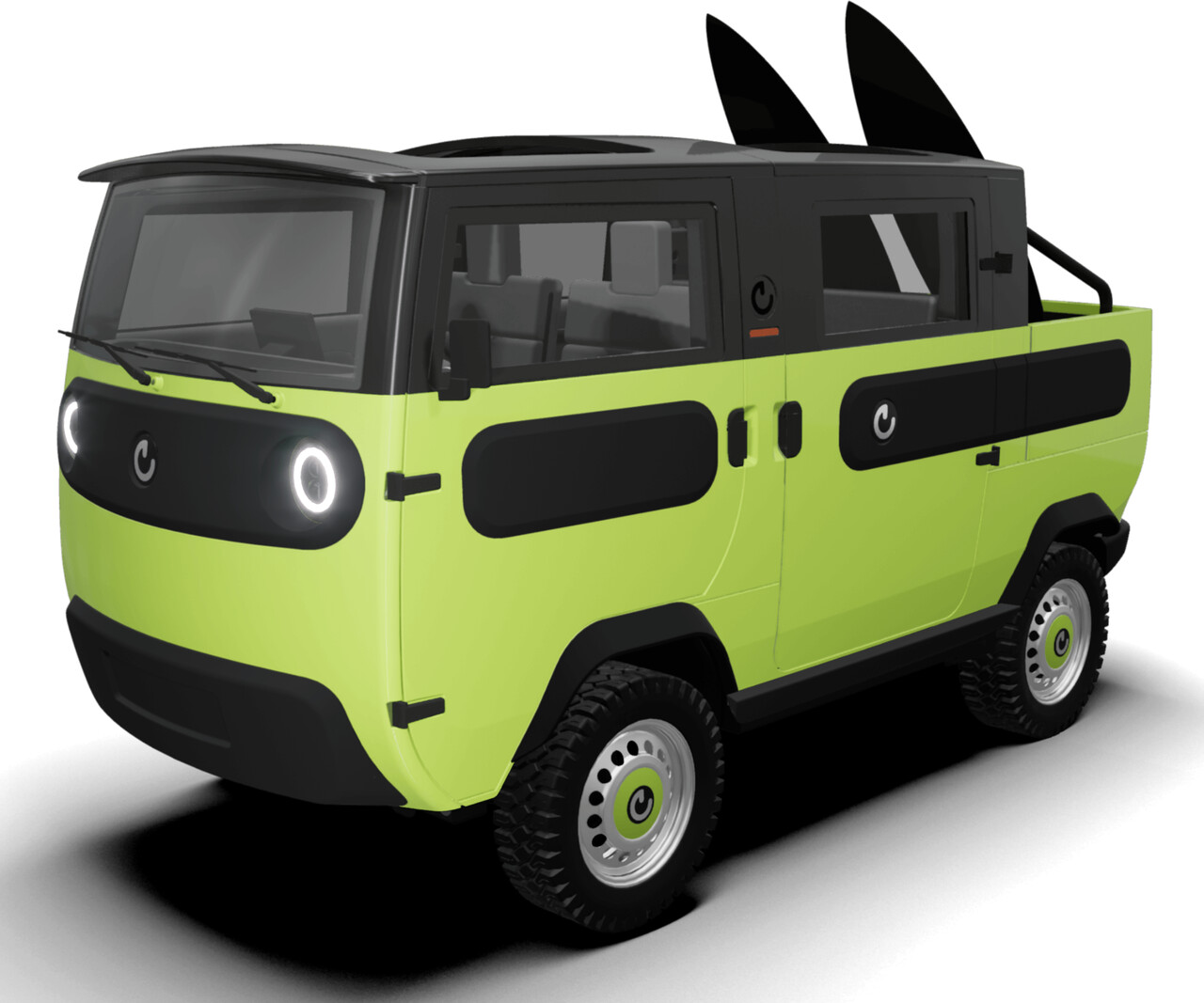 O microbús pesa apenas 500 kg e suporta uma carga total de 1 600 kg. A versão rodoviária tem um tamanho de 394,5 x 169 x 193 cm e a versão todo-o-terreno é um pouco mais alta e mais larga.