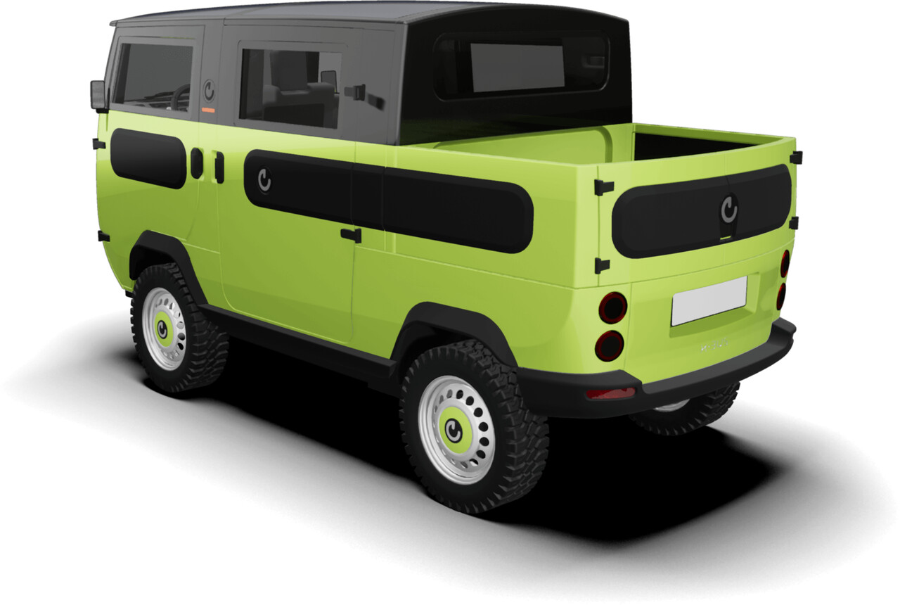 Os módulos podem ser facilmente trocados para que seja possível usar o mesmo veículo para uso pessoal e comercial.