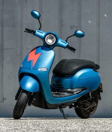 O trotinete tem um motor elétrico de 5 500 watts para uma velocidade máxima de 65 km/h.