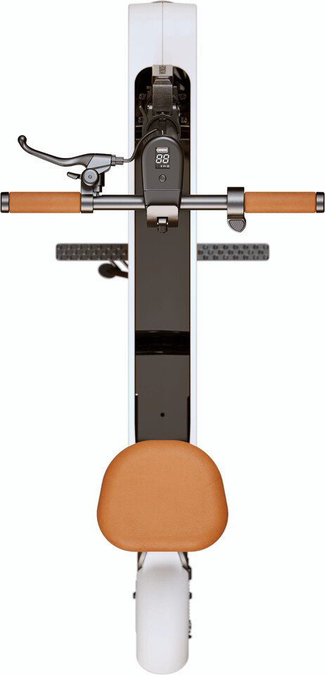 O ciclomotor liga-se a uma aplicaรงรฃo mรณvel via Bluetooth para aceder a definiรงรตes de personalizaรงรฃo, como iluminaรงรฃo e modos de conduรงรฃo.