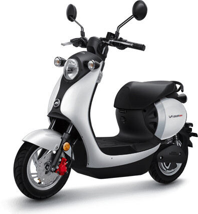 O scooter possui uma bateria de lรญtio com uma autonomia de 80 km.