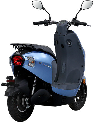 O scooter possui uma bateria de lรญtio com uma autonomia de 80 km.