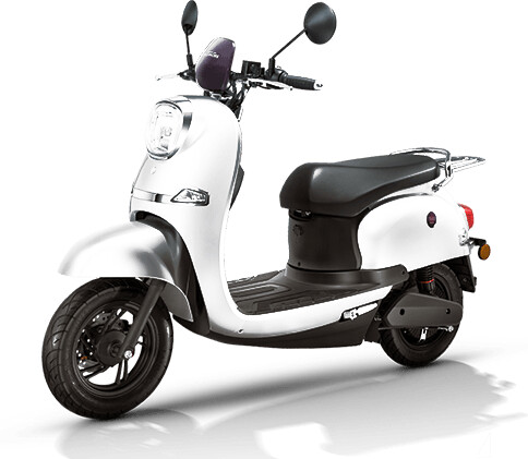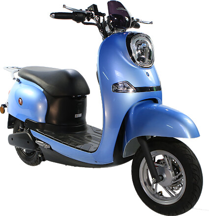 O scooter possui uma bateria de lรญtio com uma autonomia de 80 km.