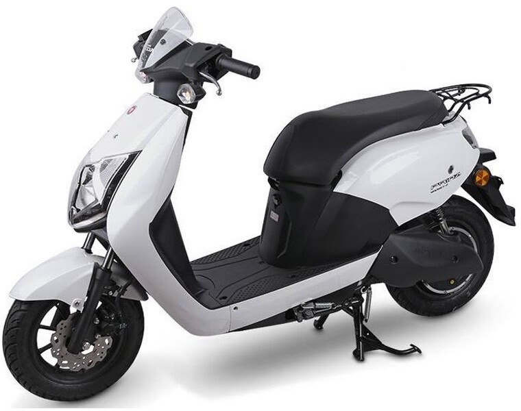 O scooter possui 5 x 20 Ah baterias de chumbo-รกcido para uma autonomia de 100 km.