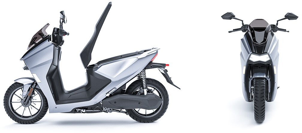 O scooter possui duas baterias de lítio para uma autonomia de 300 km.