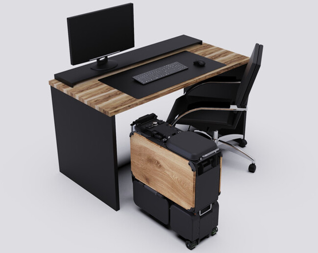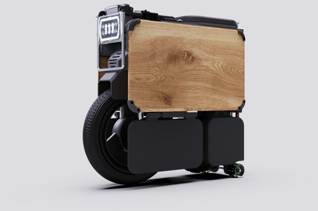 Em modo dobrado, a caixa pode ser rolada como um skate e uma pega permite transportar o ciclomotor como um trolley no aeroporto.