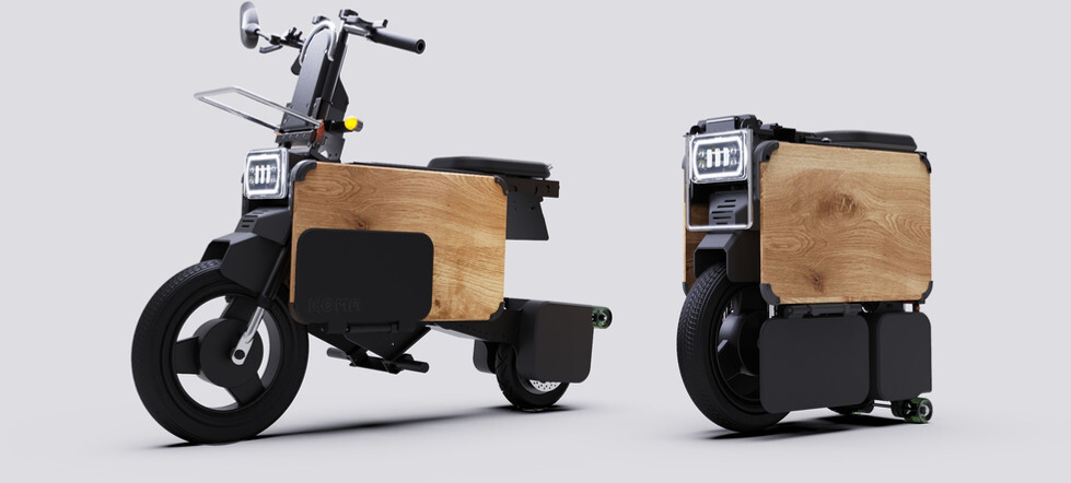 O ICOMA Tatamel é um Ciclomotor Elétrico inovador dobrável da startup japonesa de ciclomotores elétricos ICOMA.