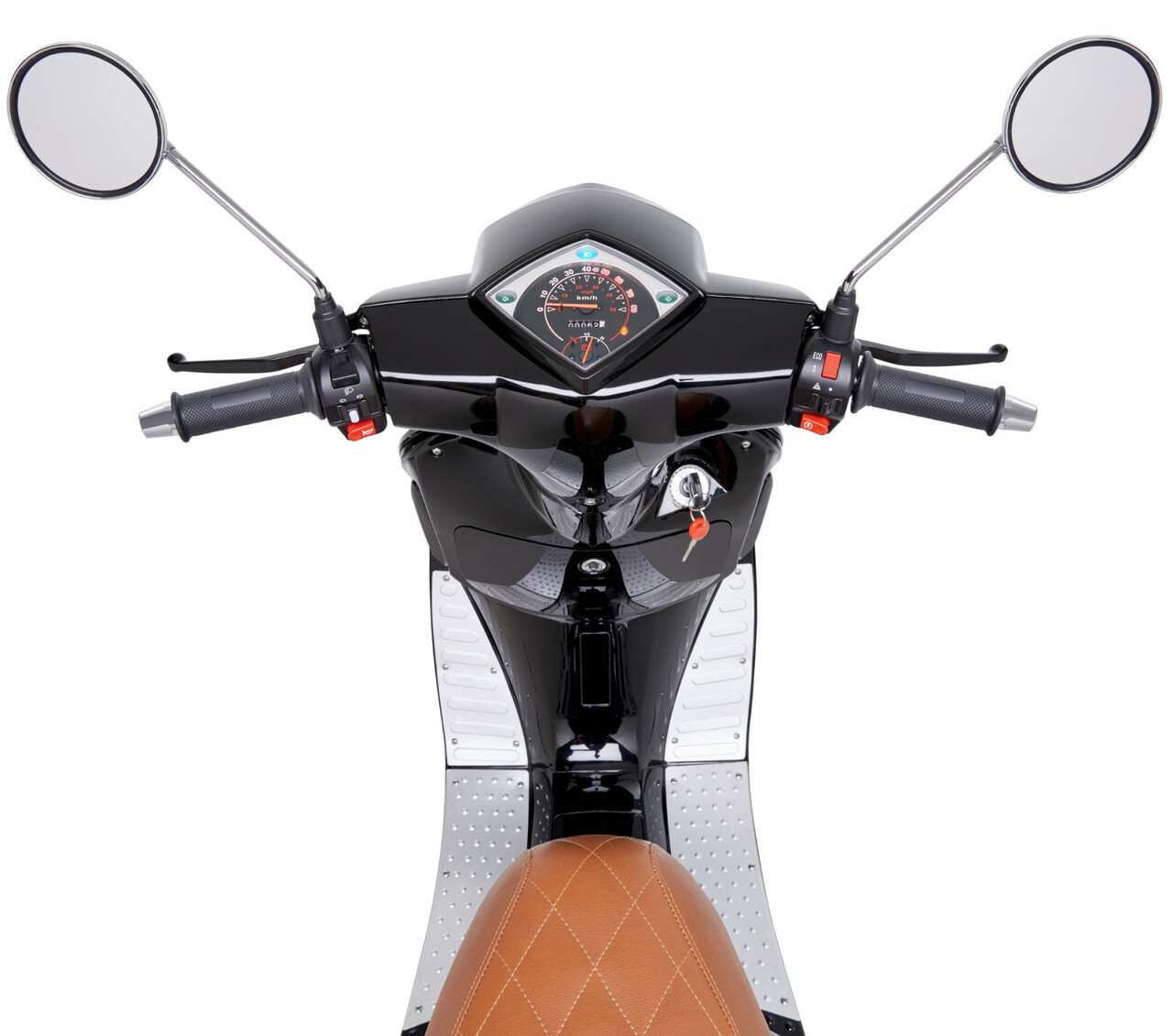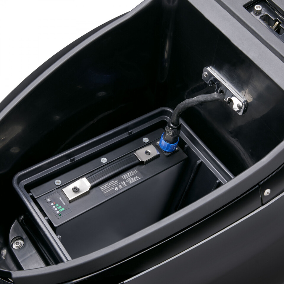 O scooter possui 2 baterias de Lítio removíveis fabricadas pela LG que fornecem uma autonomia urbana de 55 km.