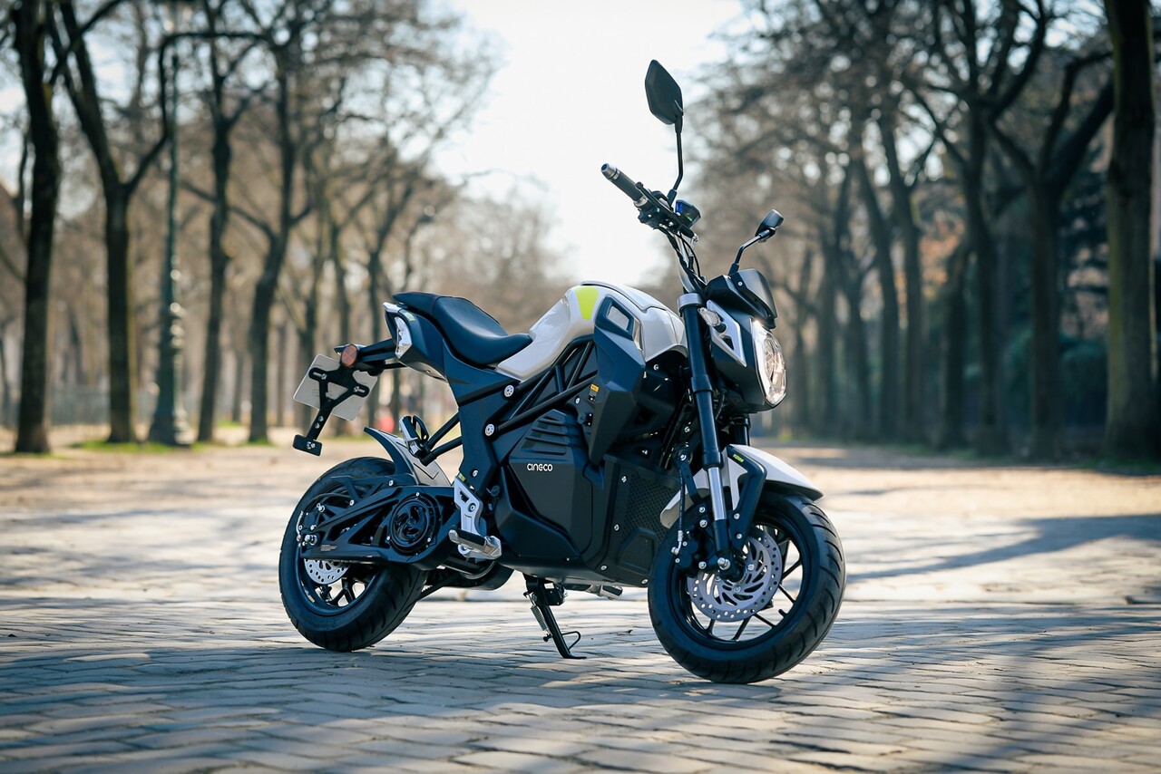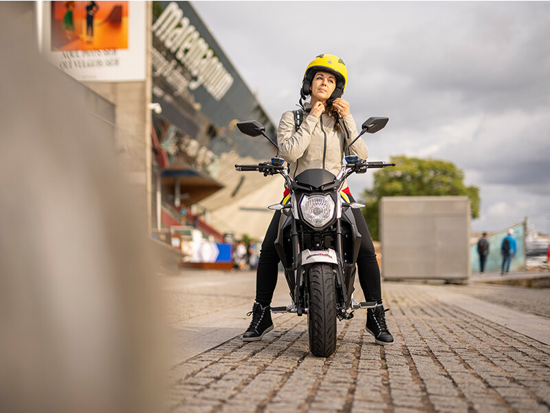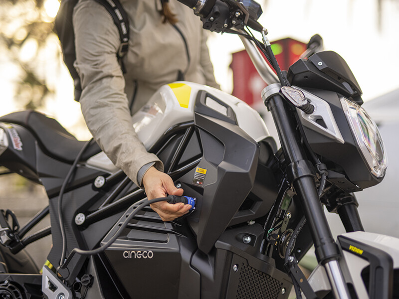 O ciclomotor elétrico possui uma bateria de lítio 26 Ah removível, com uma autonomia de 65 km.