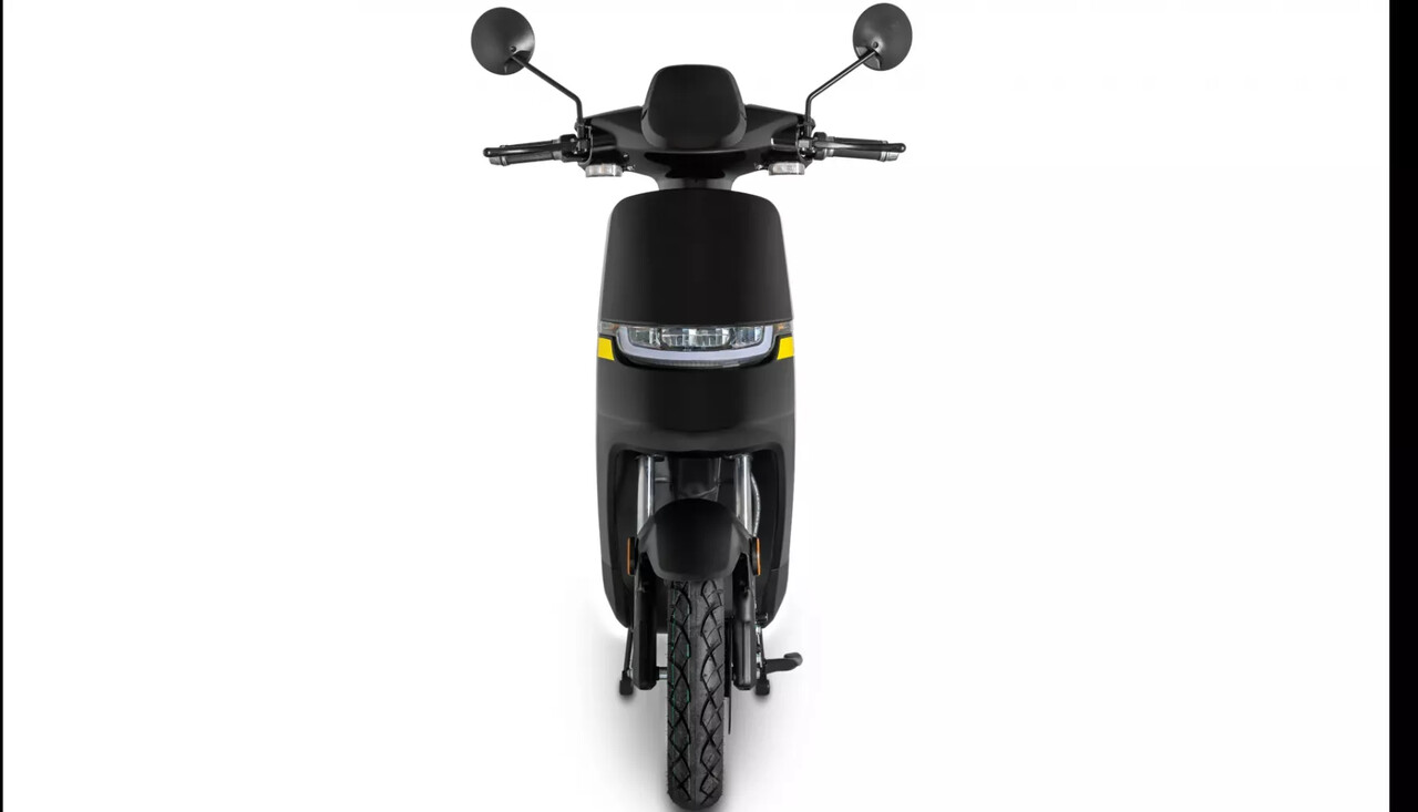 O trotinete tem uma bateria de lítio removível de 26 Ah para uma autonomia de 49 km.