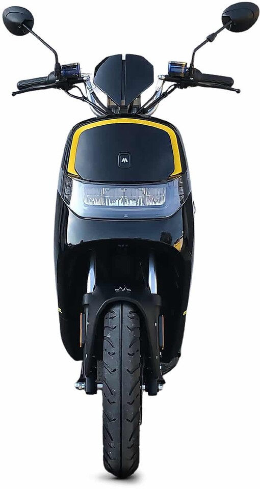 O trotinete tem uma bateria de lítio removível de 24 Ah para uma autonomia de 56 km.