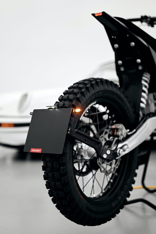 Pegámos no KTM E-CX de 2022 e adicionámos peças de carroçaria personalizadas para obter o look distintivo Vagabundᵐ. Após desmontar e digitalizar em 3D a motocicleta, projetámos, construímos e fabricámos um "kit de conversão", que é adaptável sem alterar, cortar ou soldar qualquer peça da base original.