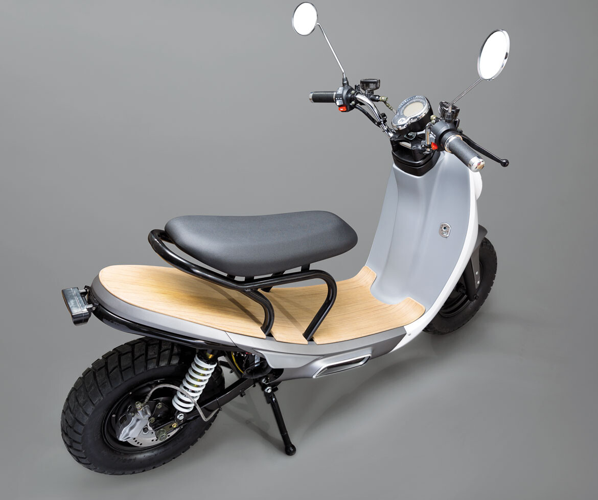 Por predefinição, a trotinete vem equipada com pneus para todos os terrenos, permitindo circular tanto em estrada como fora dela. A trotinete é robusta e durável, mas também leve, tornando-a muito agradável de conduzir. A trotinete é 40 kg mais leve que uma Vespa moderna.