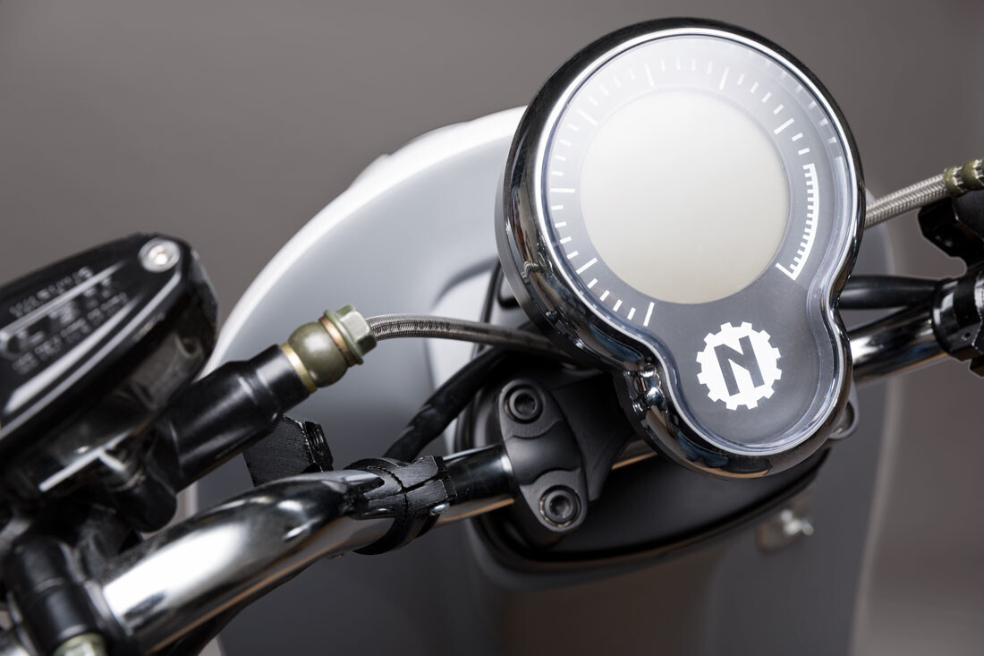 A NITO oferece vários acessórios elegantes como um capacete correspondente, para-brisas em várias cores, um sistema de navegação e um compartimento para capacete.