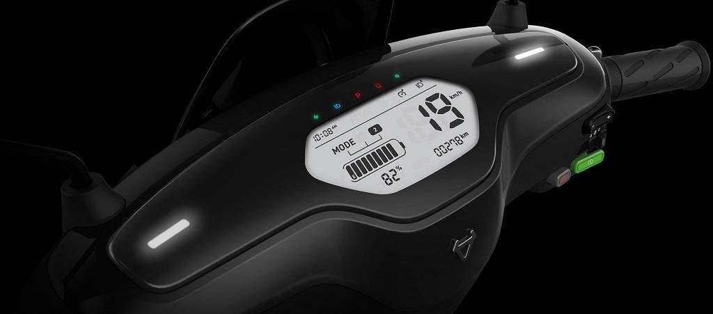 A trotinete possui um Sistema de Recuperação de Energia Cinética (KERS) ou travagem regenerativa, no qual a energia da travagem é devolvida à bateria.