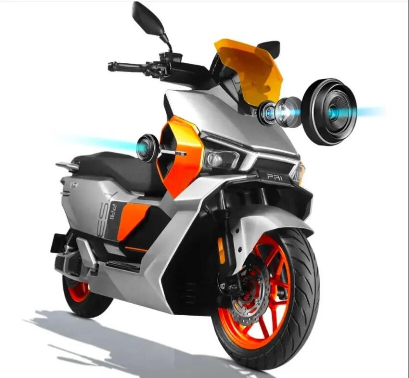 O scooter está equipado com funcionalidades de ponta, incluindo arranque sem chave, sensores de estacionamento, alarme anti-roubo com deteção de atitude, intercomunicador inteligente para capacete, assistente de arranque em subida, desbloqueio por indução e controlo remoto de interconexão.