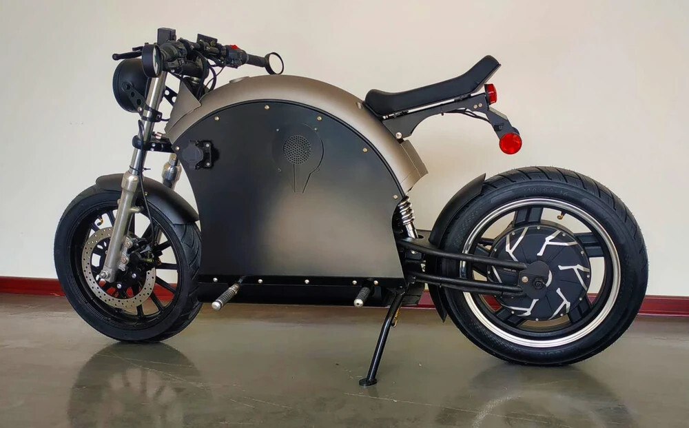 O ciclomotor possui um motor elétrico potente de 14 000 watts (14 000 watts de potência de pico) para uma velocidade máxima de 120 km/h.