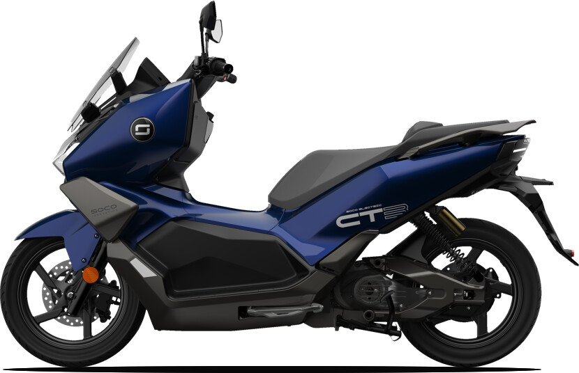 O CT-1 e CT-2 são um maxiscooter de alto desempenho com performance de 125cc da marca Super Soco.
