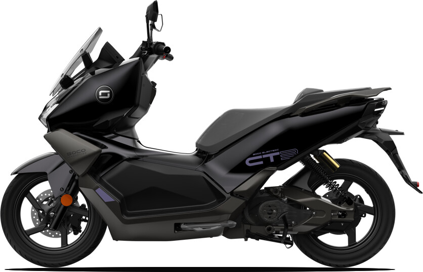 O CT-3 é um maxi-scooter de alto desempenho com motorização de 250cc da marca Super Soco.