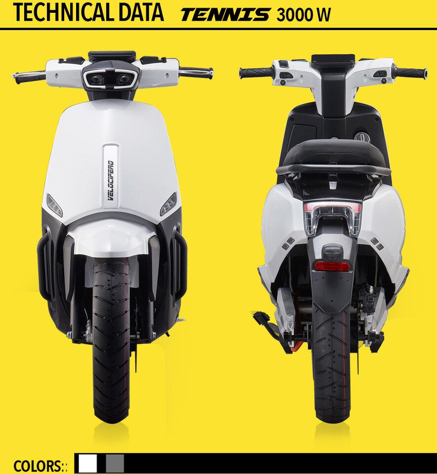 O Tennis é um trotinete elétrico do fabricante de ciclomotores elétricos Velocifero. A marca foi criada pelo conhecido designer italiano Alessandro Tartarini e é apoiada por um grande fabricante chinês. Alessandro Tartarini criou designs de scooters para a Lambretta, uma das marcas de scooters mais icónicas de Itália. Ele é também o criador do design do Italjet Dragster.