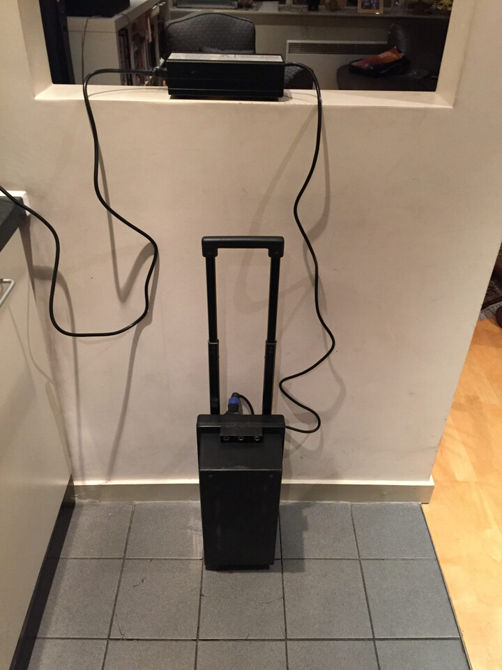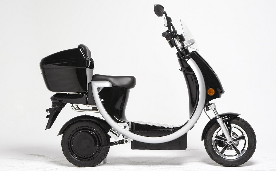 O City 80L possui uma bateria de lítio removível com capacidade de 24 Ah para uma autonomia de 70 km. A bateria tem um formato de trolley fácil de manusear, facilitando o transporte para carregamento.