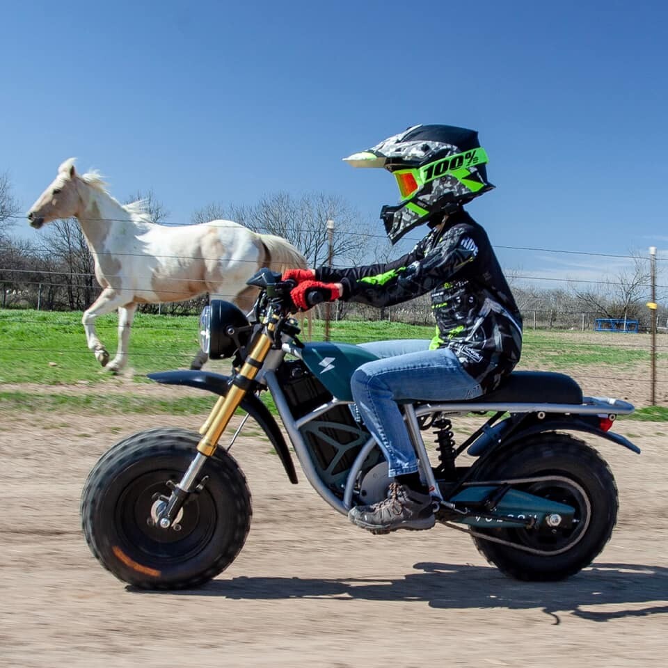 O ciclomotor está disponível em duas versões (Grunt e Runt). A versão Runt é projetada para crianças, permitindo que acompanhem os pais em trilhas.