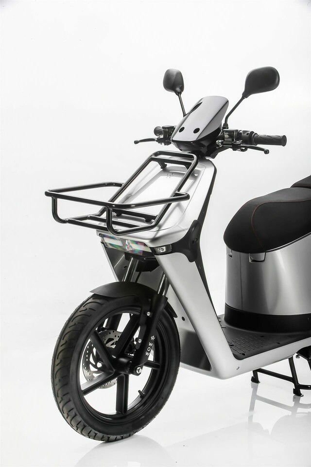 O scooter possui duas baterias permutáveis que fornecem uma autonomia efetiva de até 110 km. Ao utilizar múltiplas baterias, o scooter pode operar 24/7.