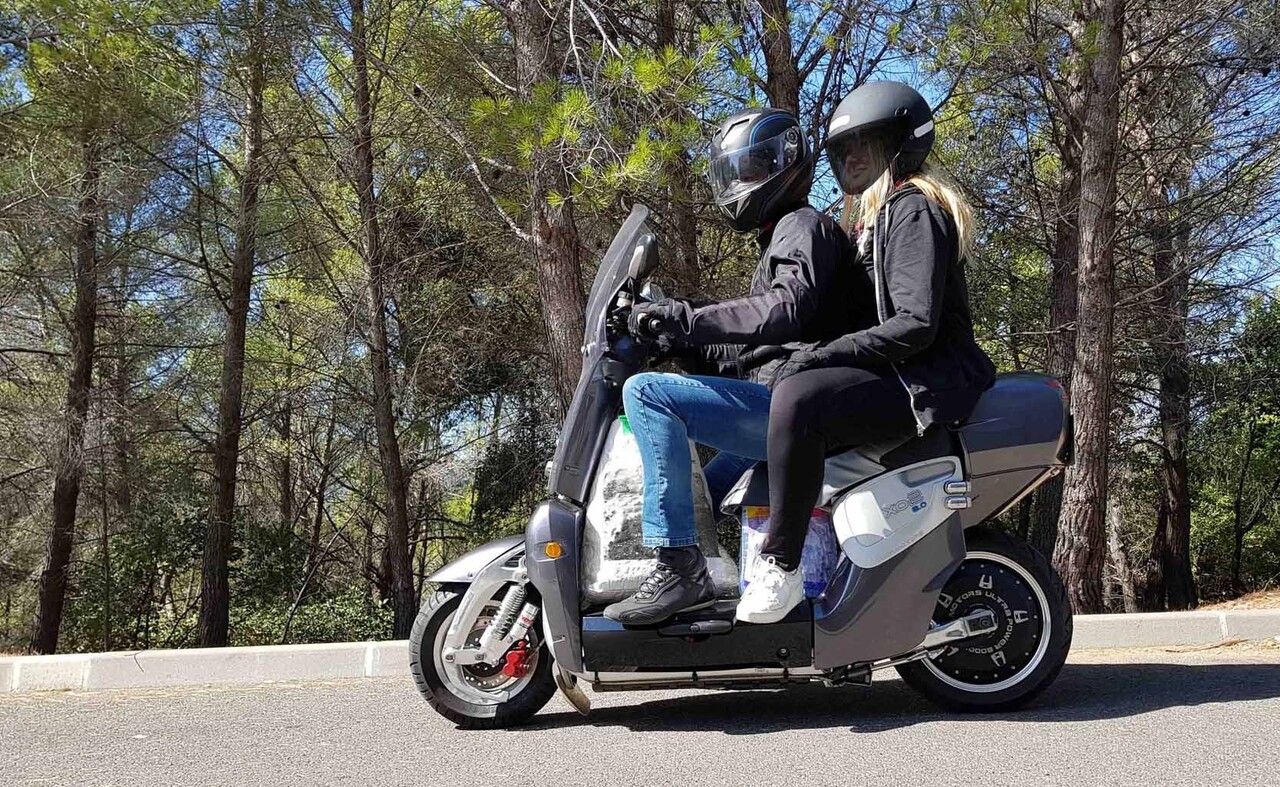 O trotinete oferece um assento confortável para 2 pessoas. O trotinete também proporciona muito espaço para bagagem durante a condução.