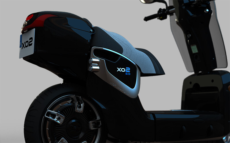 O XO2 8.0 é um trotinete de classe 125cc e tem uma velocidade máxima de 120 km/h. O trotinete acelera de 0 a 100 km/h em 6,2 segundos.